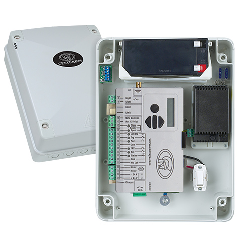 La gamme RSO industrielle de CENTURION a été conçue pour automatiser en toute sécurité des portes à enroulement extrêmement lourdes telles que les entrées d’usine et les baies de chargement. Chaque modèle est équipé d’un moteur électrique puissant qui, couplé à une boîte de vitesses performante, fournit une force de levage maximale. De surcroît, un dispositif de commande manuelle pratique comprenant une chaîne de 5 m, permet de s’assurer que la porte peut être actionnée même en cas de panne de courant. Le RSO5DC incorpore un automate logique intelligent complet avec une interface à LCD conviviale pour une configuration facile. En plus de cela, deux batteries de 7 Ah assurent une sauvegarde fiable, garantissant que le RSO5DC reste en marche même dans l’éventualité d’une panne de courant prolongée. L’automate prévoit également la connexion de dispositifs auxiliaires tels que des faisceaux de sécurité infrarouges, des lecteurs de proximité et des claviers.